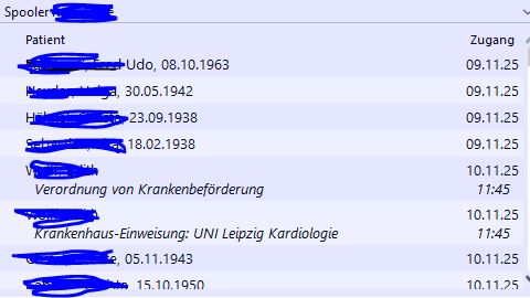 Zitat von Dirk Falkenhahn am 11. November 2025, 11:03 UhrEs sind Druckaufträge. MFA würde gern mehr sehen. Besonders Rezepte. Heißt, jeder Eintrag soll drunter eine Zeile mit dem Auftrag haben, nicht nur KH-Einweisung und Transport
