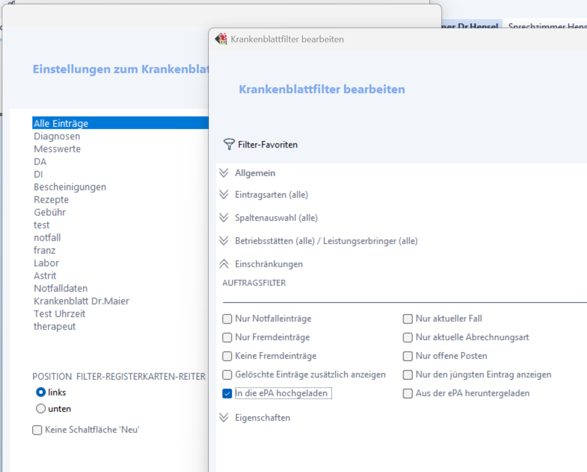 Ich würde in der Krankenblattansicht gerne einen Filter für Dokumente die in die ePA hochladbar sind (bleuer Pfeil) anlegen. Gibt es da eine Auwahlmöglichkeit? Habe bisher leider nichts gefunden.