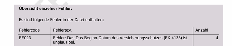 „Das Beginn-Datum des Versicherungsschutz (FK 4133) ist unplausibel.“